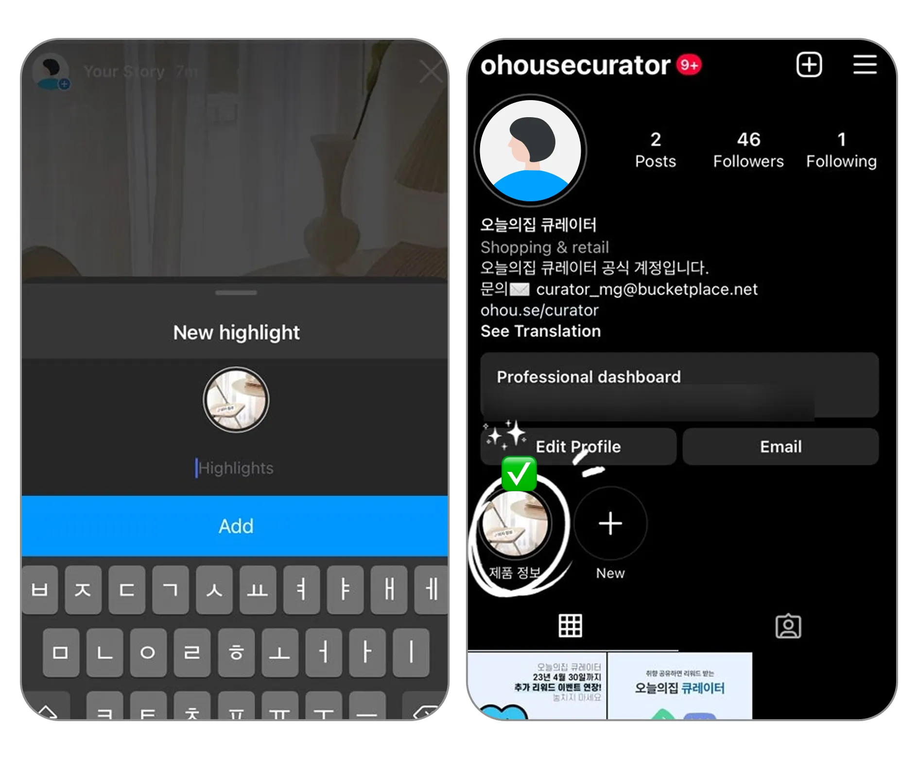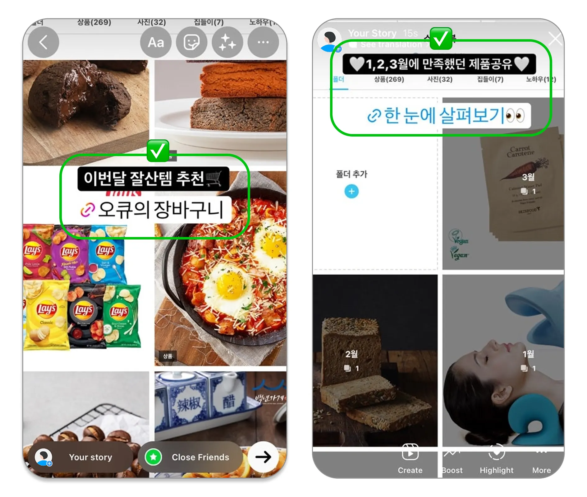 스토리는 하이라이트로 만들어서 고정해 보세요!