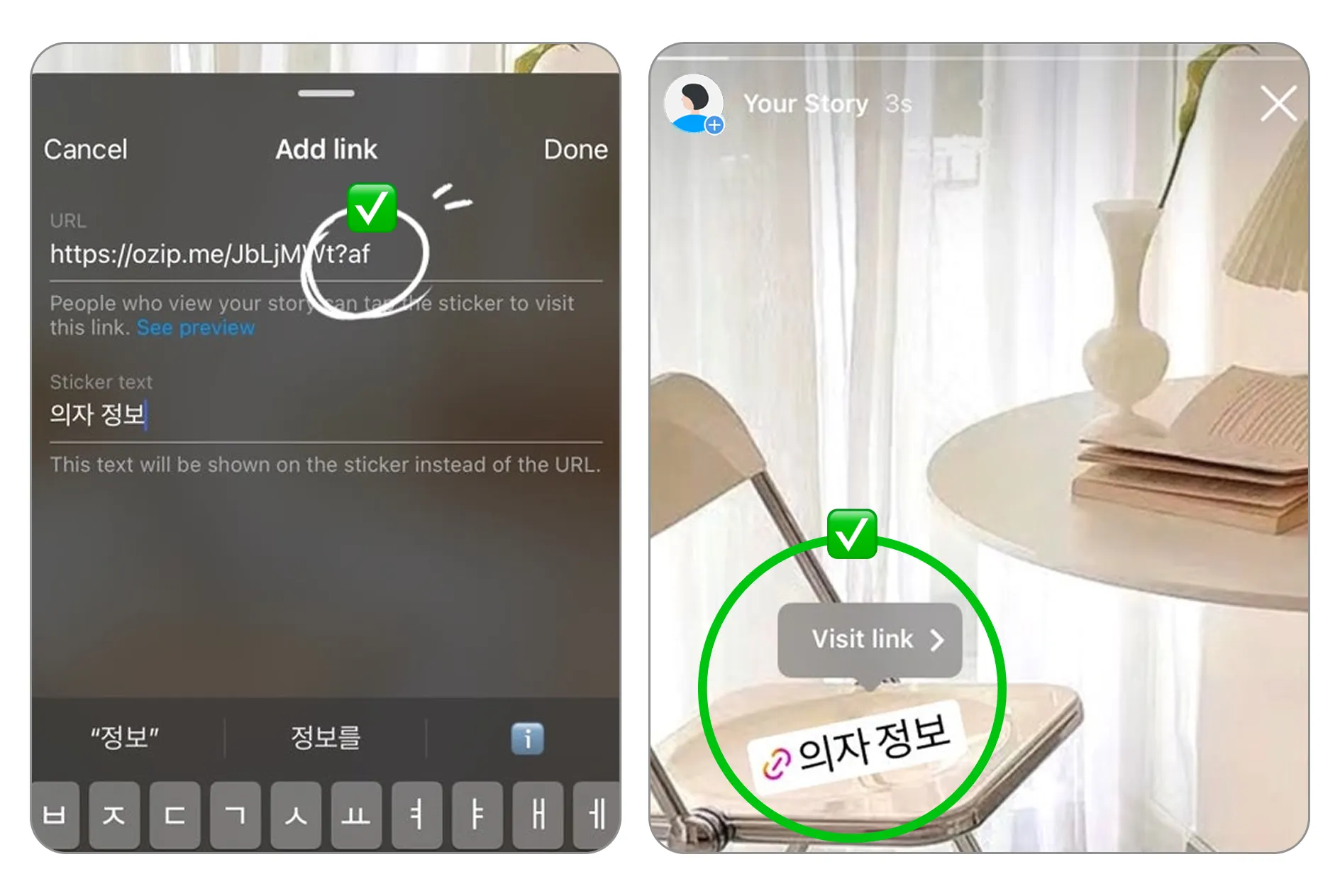 인스타그램 스토리 꾸미기 기능 중 ‘링크’ 삽입 기능을 활용해 보세요!